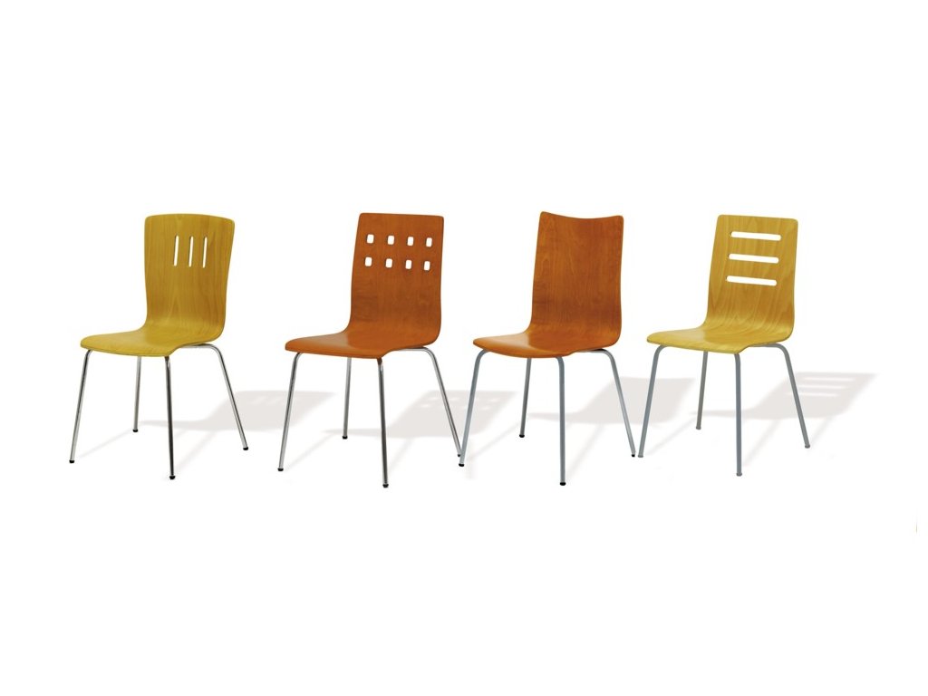 - překližkové židle atraktivního designu s možností využití do jídelen, konferenčních místností i kanceláří