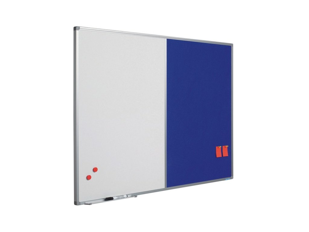 Kombinovanou tabuli tvoří bílá magnetická tabule a textilní nástěnka. Bílá část je tvořena keramickým povrchem, popisovatelným za sucha stíratelnými popisovači. Nástěnková část je pokryta modrým textilem. Tabule je rámována profilem Softline s šedými plastovými rohy. Součástí dodávky je montážní materiál a odkládací polička.