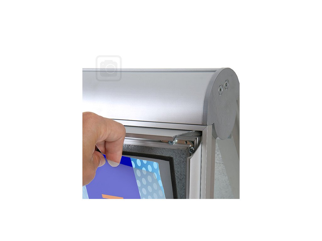 - výměna motivů v poutači se provádí zepředu pouhým odklopením rámového profilu